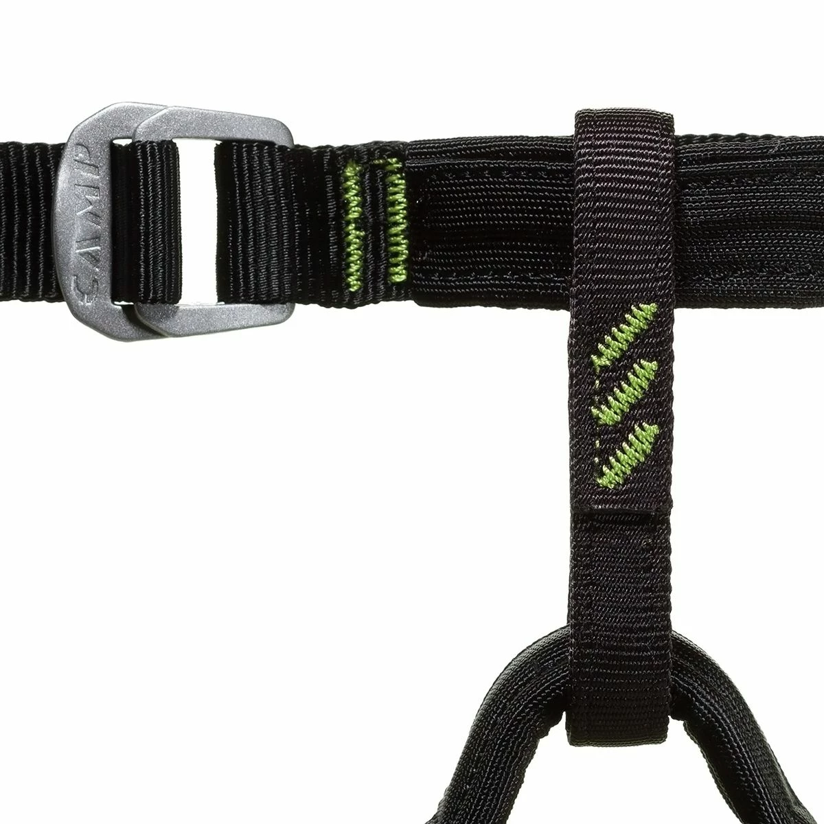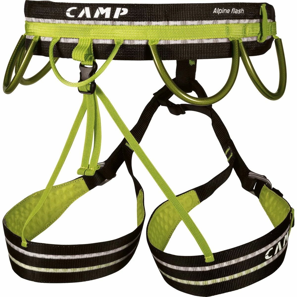 The Alpine Flash Harness has the same features as Camp USA’s technical ice climbing harnesses, but it is lighter and more compact for longer mountaineering missions. Its load webbing construction uses minimal padding and strong strands of webbing to make the harness light, packable, and hydrophobic. Auto-locking buckles make the Alpine Flash fully adjustable at the waist and legs. Five gear loops, instead of the usual four, and four additional ice tool attachments provide massive storage options for the grandest adventures.